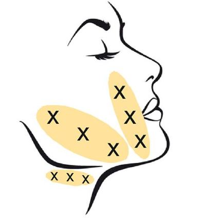 Кількість одиниць дії препарату (1 ОД=1 розподіл=0,05 мл) на один вкол залежить від ступеня гіпертрофії та вираженості підшкірно-жирового пакета, гравітаційного птозу, наявності та об'єму другого підборіддя. Кількість одиниць дії вона один вкол може варіювати від 1 до 3 ОД.